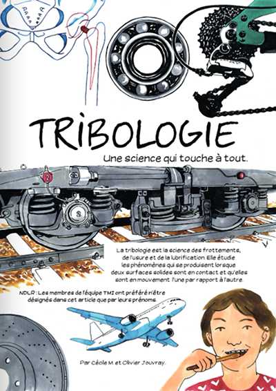 Entre visites, explications techniques et discussions passionnées, les auteurs et autrices ont découvert une science bien plus proche du quotidien qu’il n’y paraît : du frein de vélo aux moteurs d’avion, de la lubrification des machines à la friction d’un stylo sur le papier. « Il n’y a pas que de la mécanique… On a de la chimie, on a des matériaux, on a de la physique », rappelle Sylvie Descartes. Cette richesse disciplinaire est au cœur des quatorze planches que la revue consacre au laboratoire, intitulées « Tribologie, une science qui touche à tout ».
