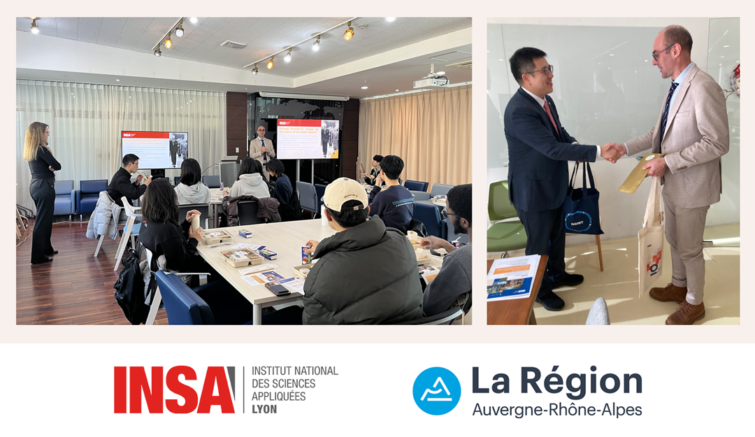 Du 5 au 9 janvier 2026, une délégation conduite par le directeur des relations internationales, le Professeur Damien Fabregue, s’est rendue à Séoul afin de promouvoir le programme court d’été en intelligence artificielle InsAI, soutenu par la Région Auvergne-Rhône-Alpes dans le cadre de l’appel à projets « Ambition internationale ».